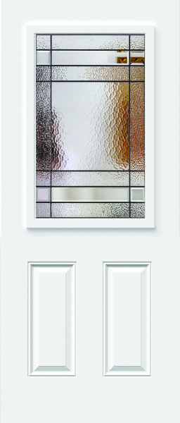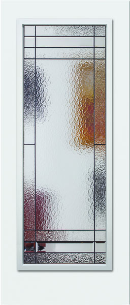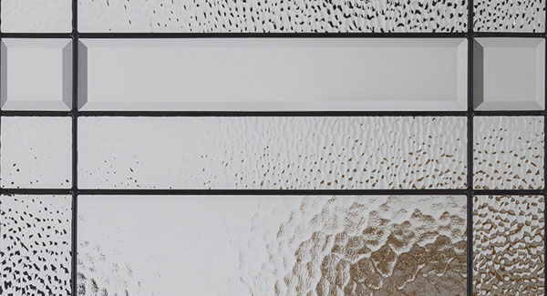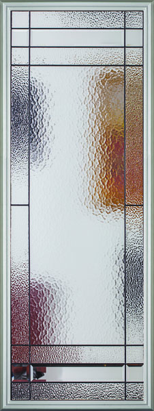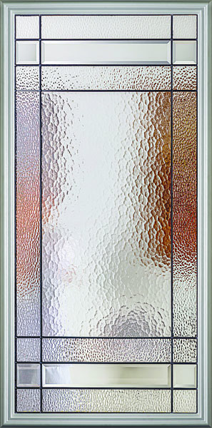 The Celeste front door glass insert delivers a simple geometric pattern to provide a modern look that offers both light balance and high privacy. With aqualite glass juxtaposed with clear bevels and hammered glass, the Celeste glass insert is available in Black Patina caming. Request a free quote on the Celeste door glass insert today!
